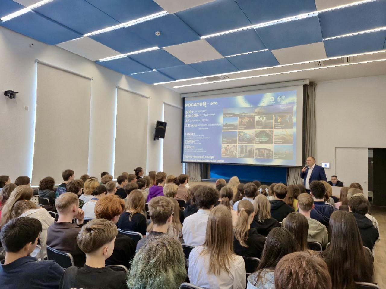 В рамках всероссийской акции «Разговоры о важном», посвященной 80-летию атомной промышленности, команда ЦПТИ во главе с генеральным директором Яковом Никоновым 22 сентября провела урок «Мирный атом. 80 лет атомной промышленности» в московской школе №1210 для учащихся 9–11-х классов инженерного и медицинского профилей. Это был настоящий разговор о том, как атомные технологии меняют мир — от чистой энергетики до медицины и новых материалов.